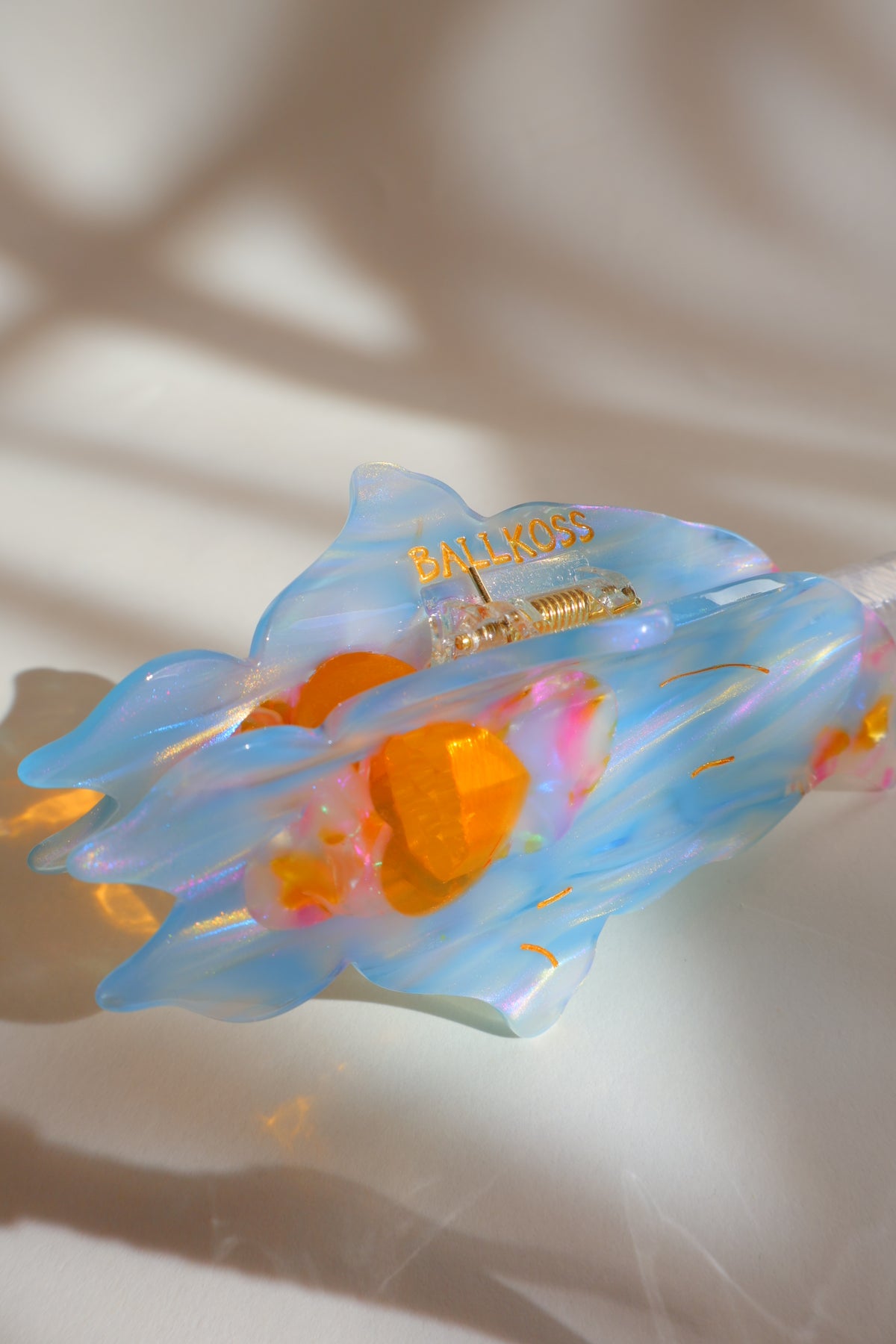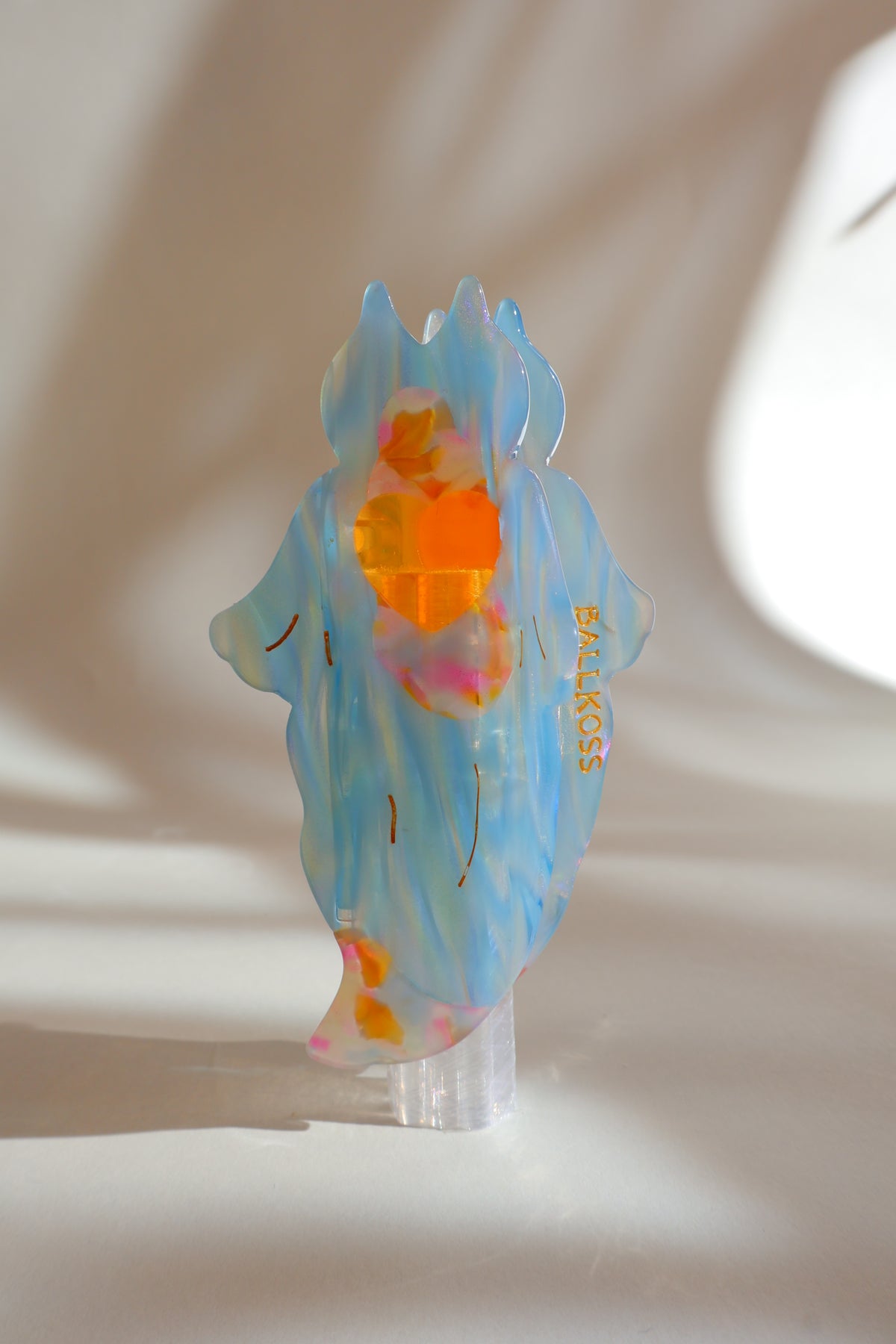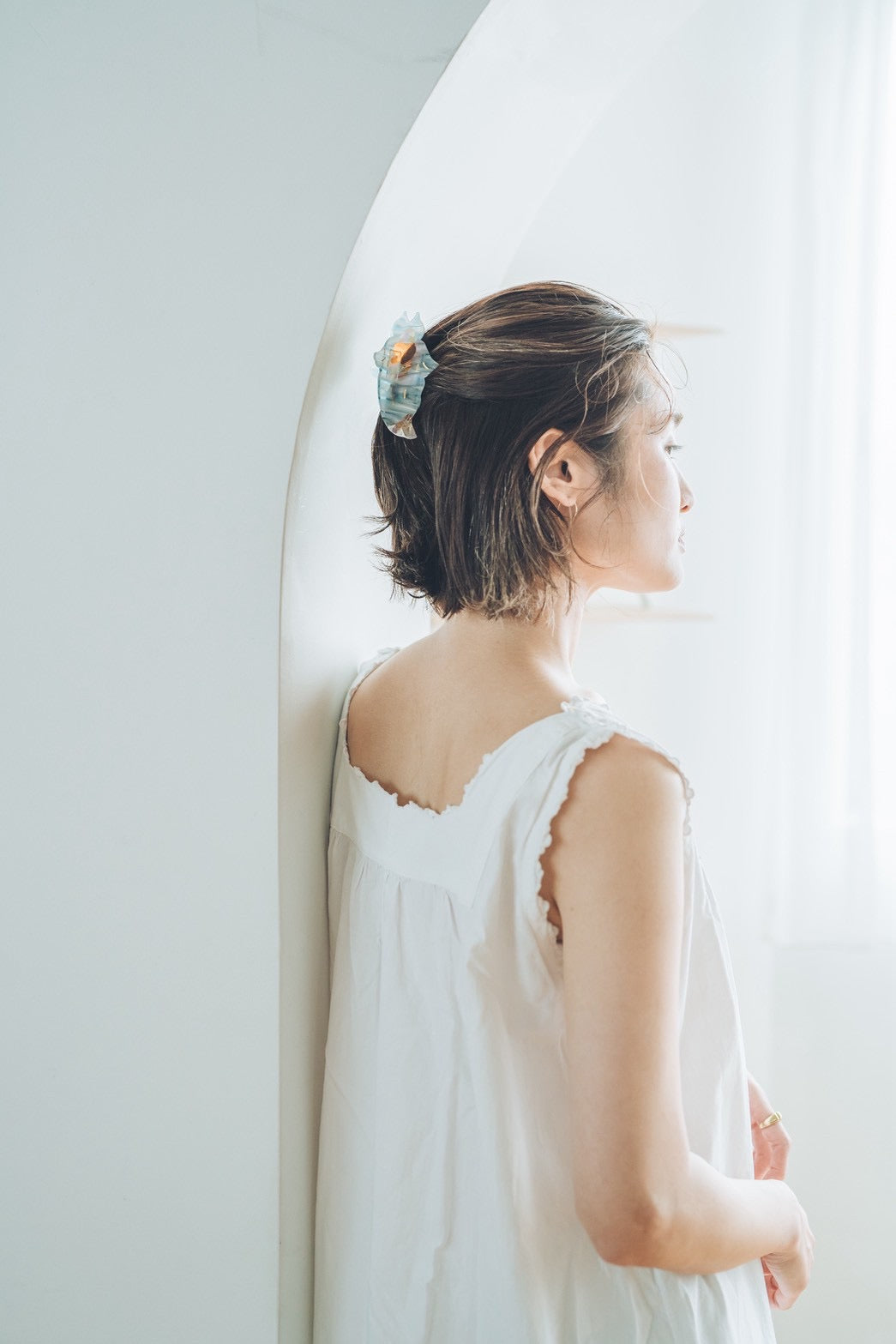 淡いブルーを基調に、オーロラのようなきらめきが広がるクリオネモチーフ。