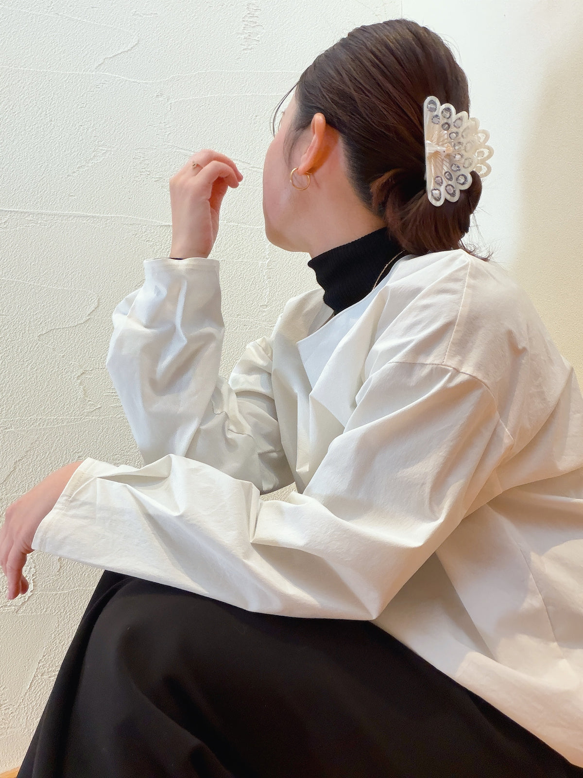 부채처럼 펼쳐진 깃털에는 섬세한 투명감과 은은한 라메가 흩어져 있어, 빛을 받을 때마다 부드럽게 반짝입니다。