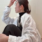 가볍고 착용감이 부드러우며, 반짝이는 투명감과 광택이 매력인, 환경을 배려한 지속 가능한 소재입니다。
