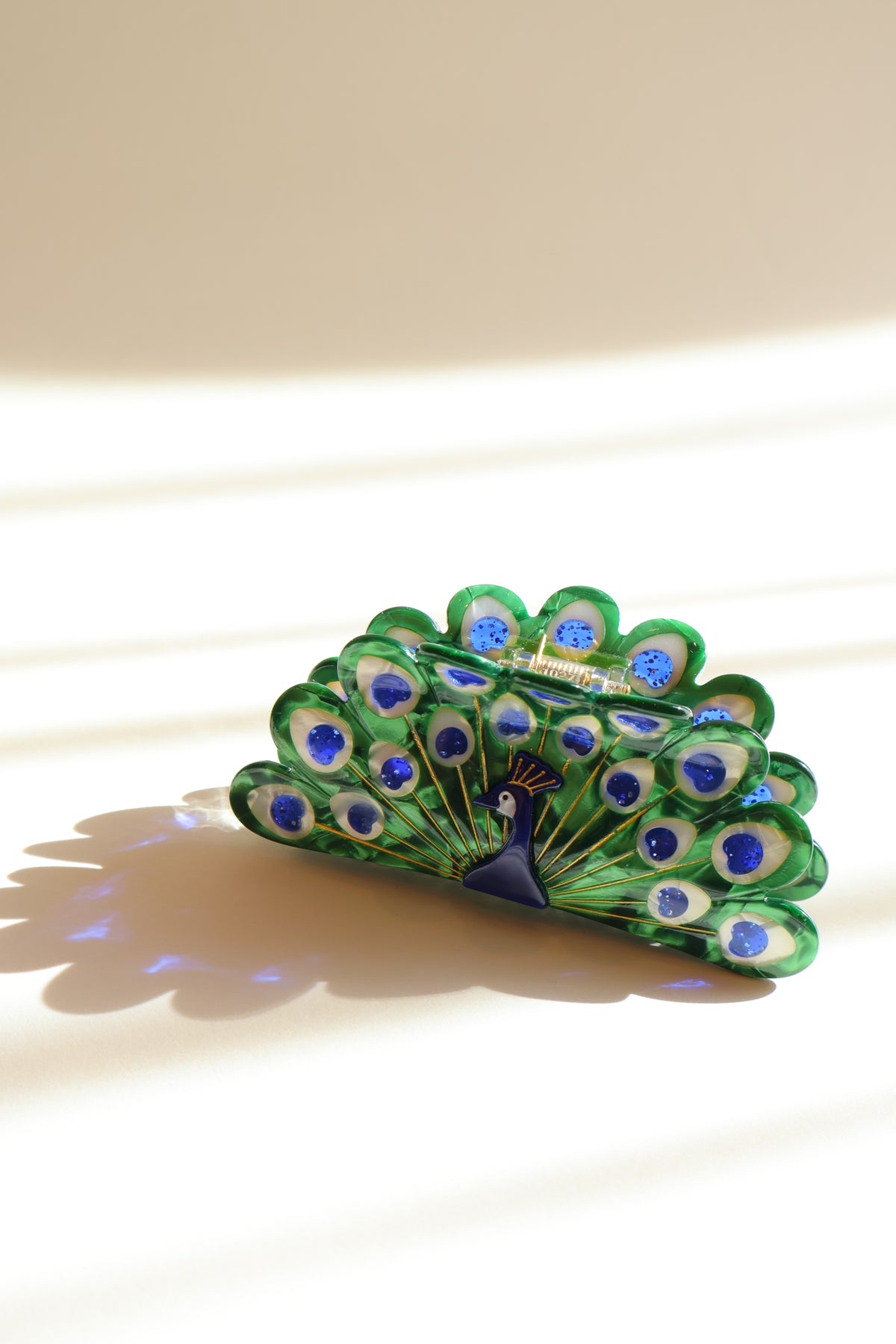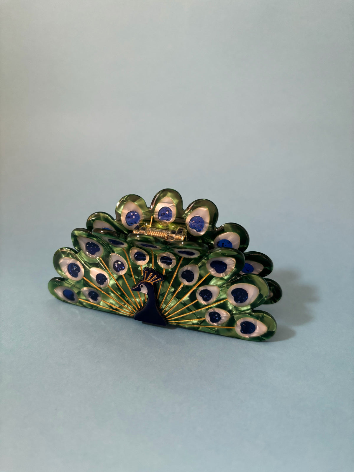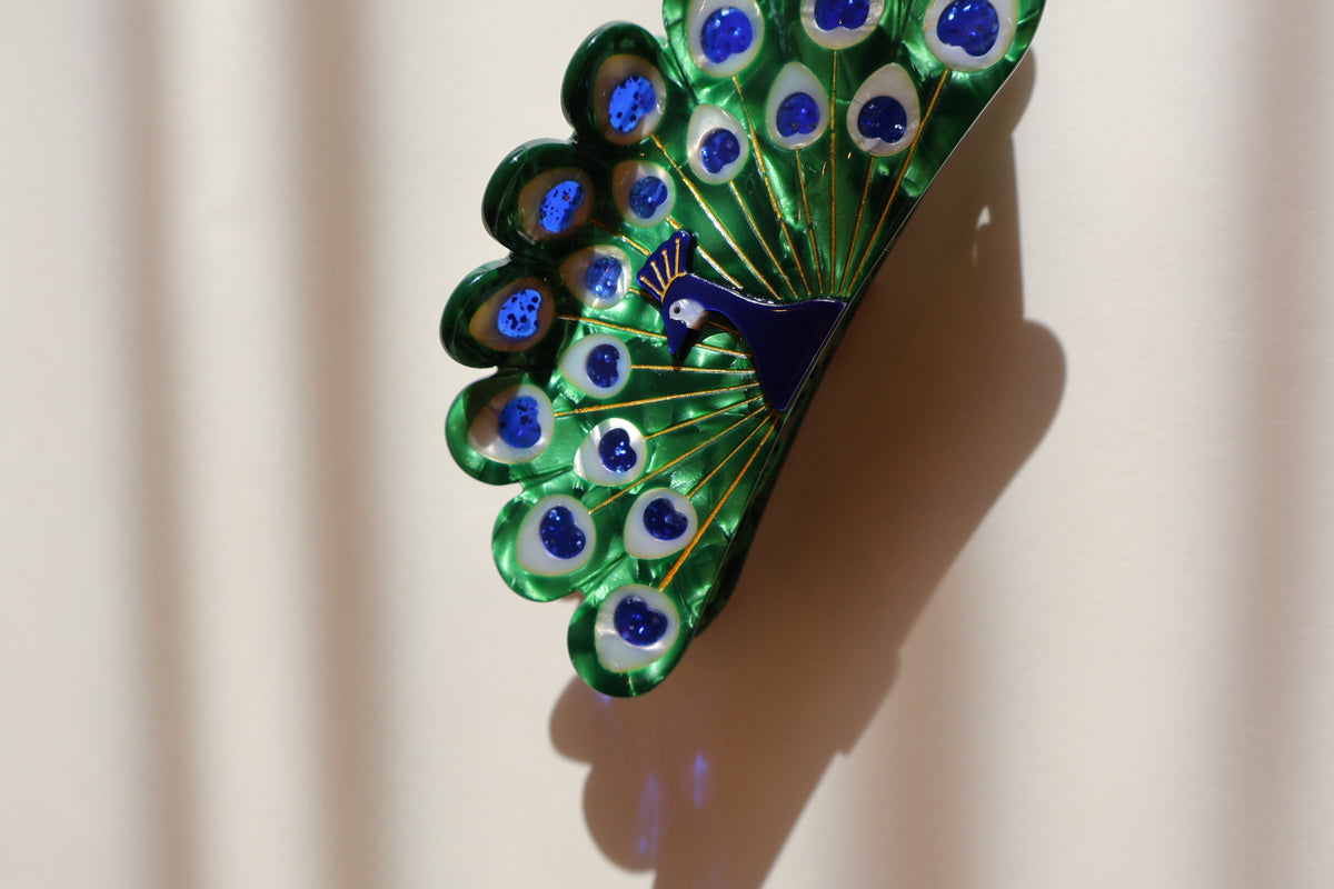 クジャクがモチーフの綺麗なヘアクリップ。
