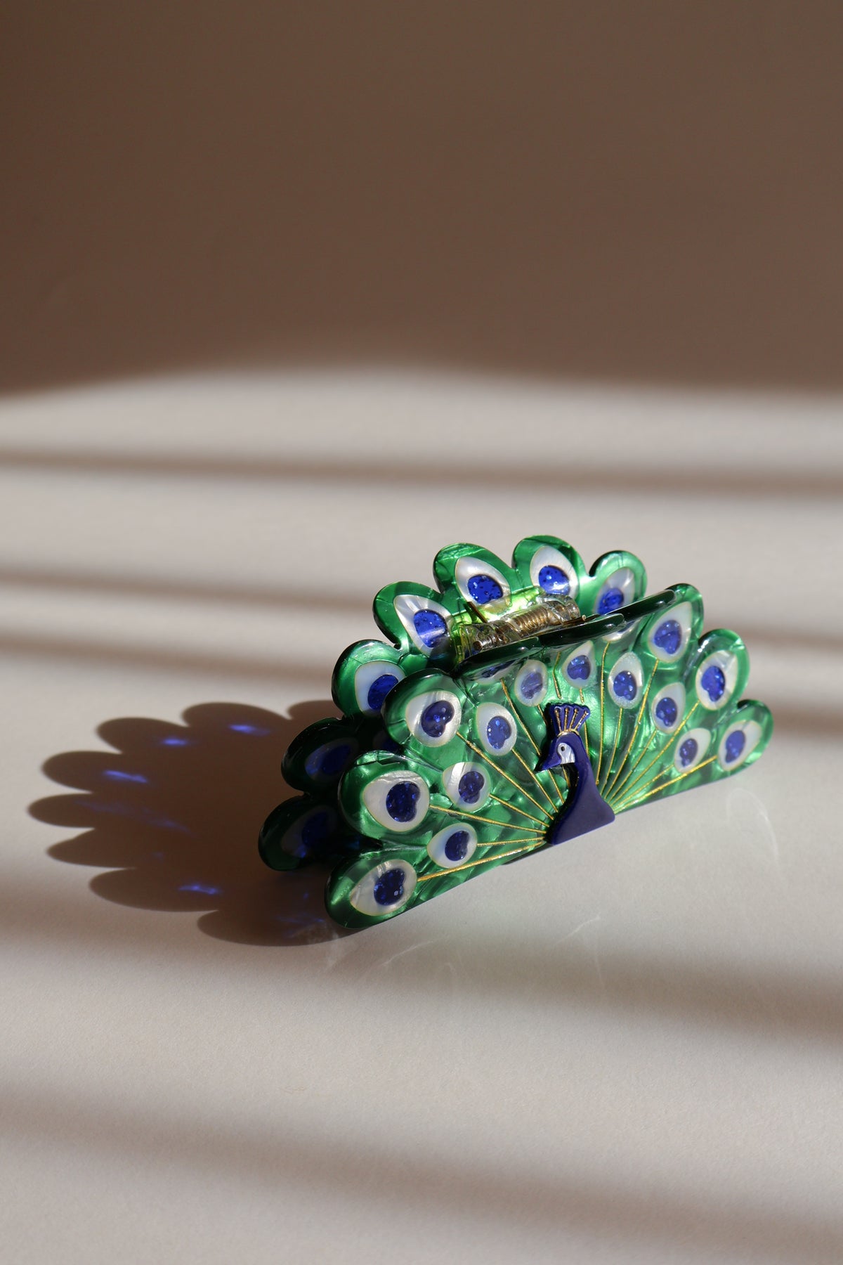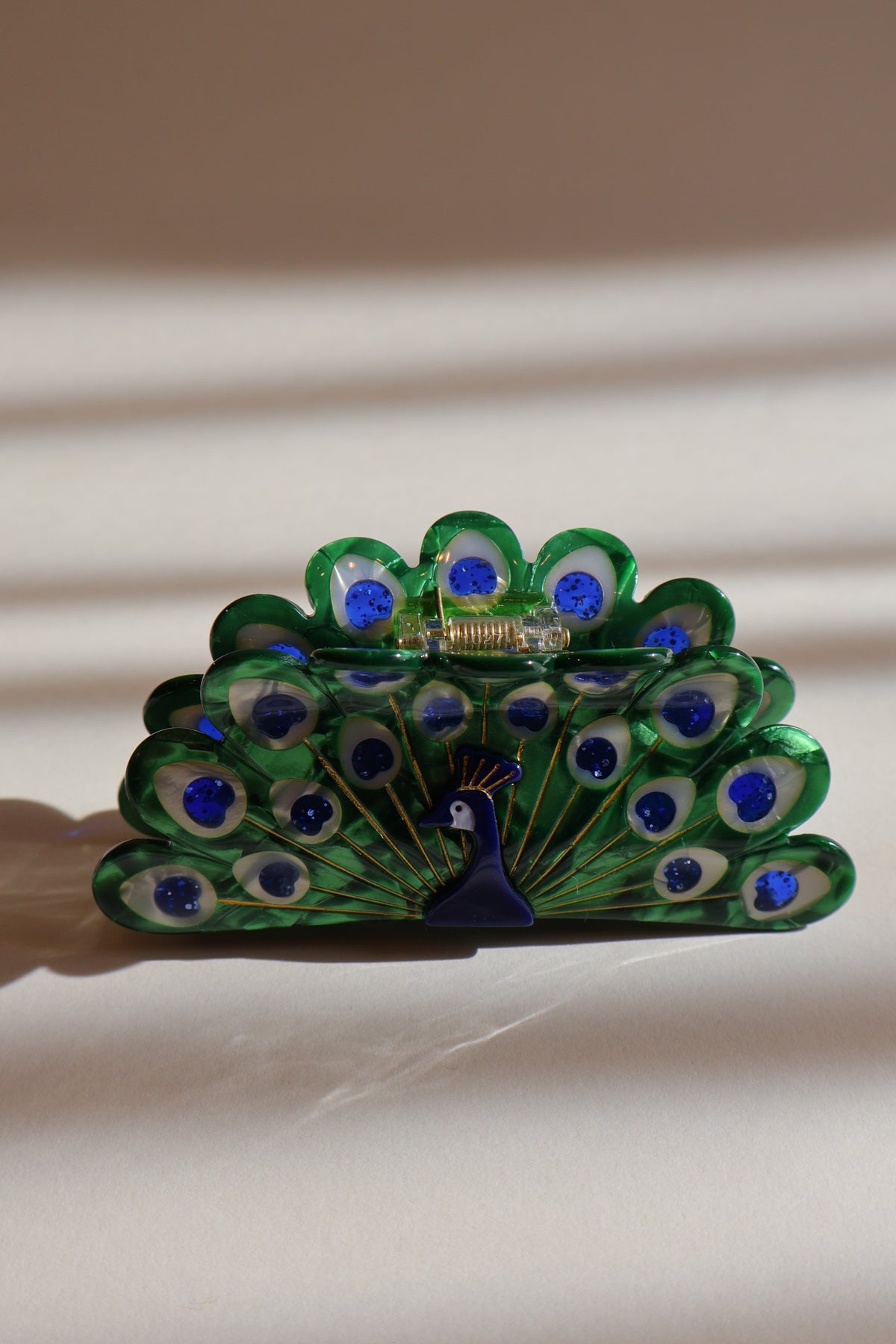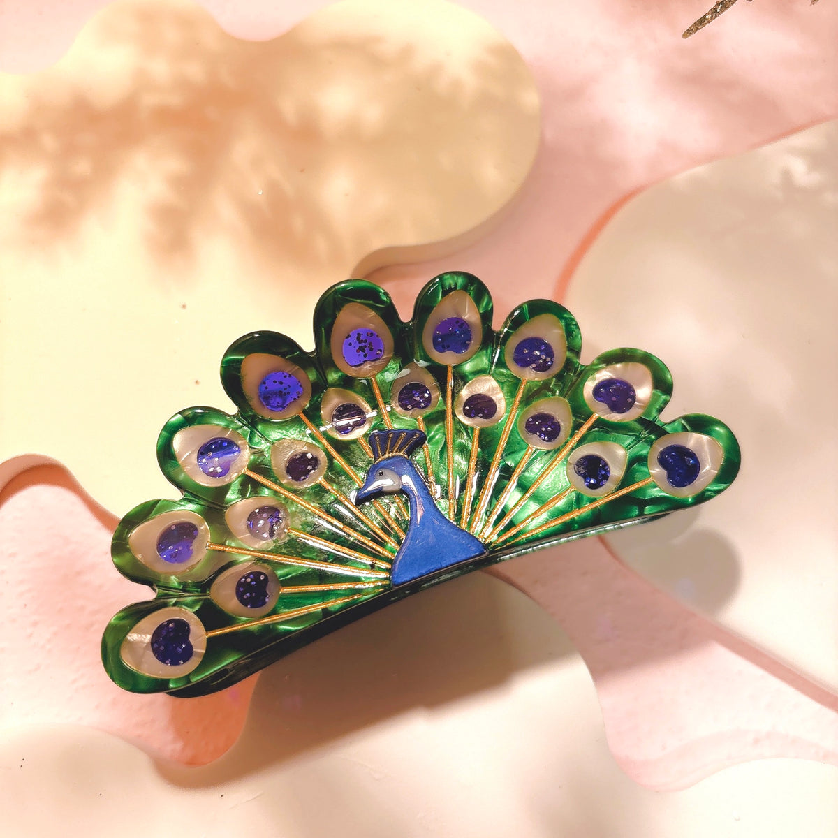クジャクがモチーフの綺麗なヘアクリップ。