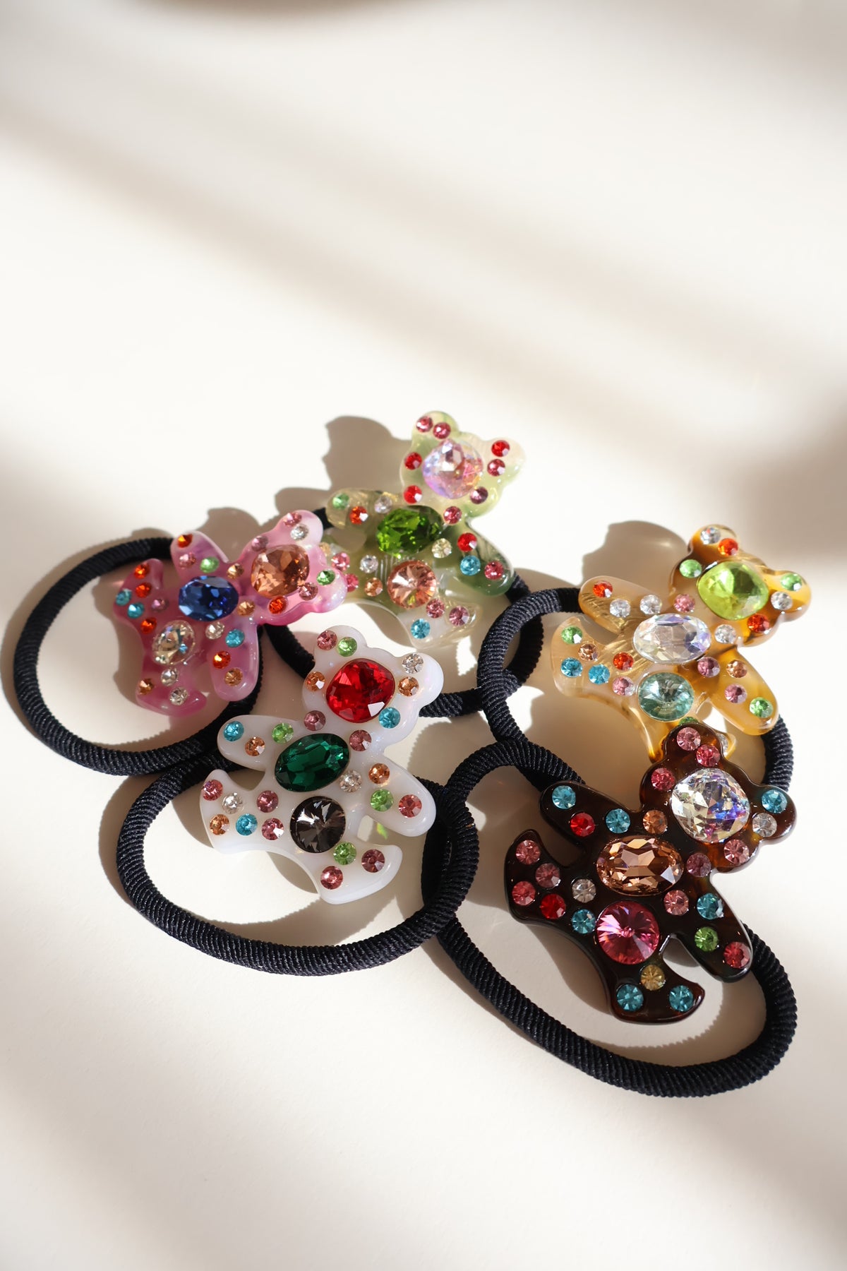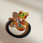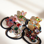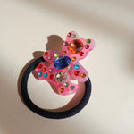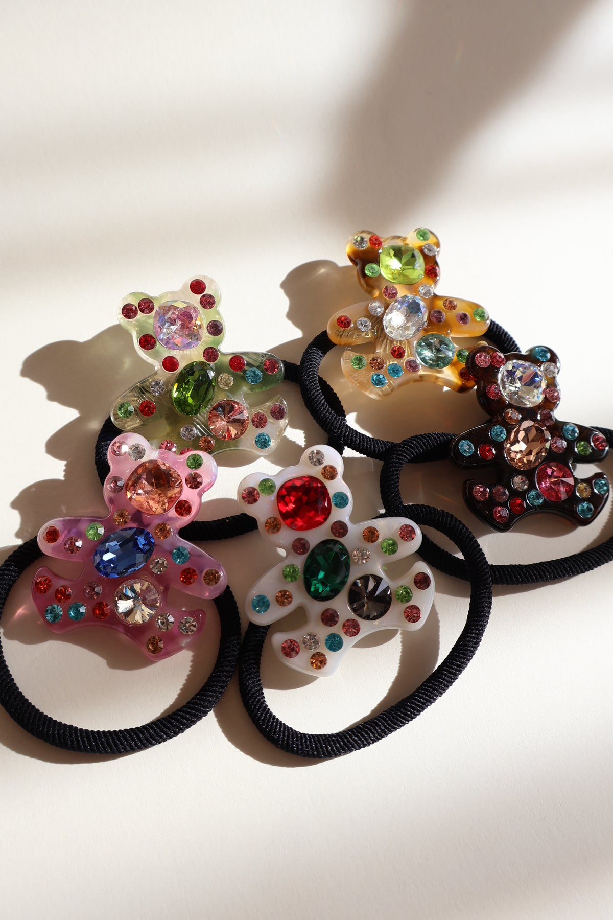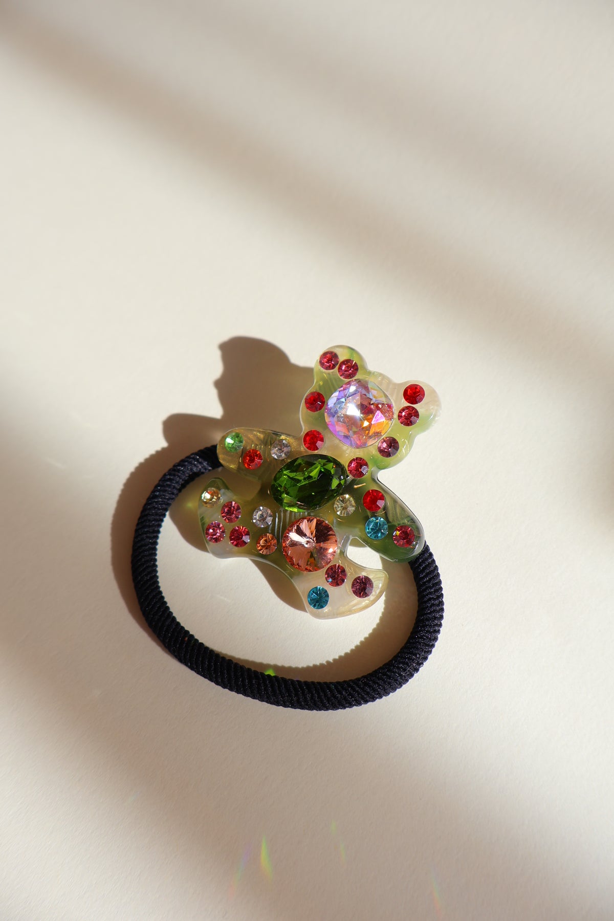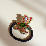 カラフルなクリスタルをたっぷりとあしらった、ジュエリーベアモチーフのヘアゴム。