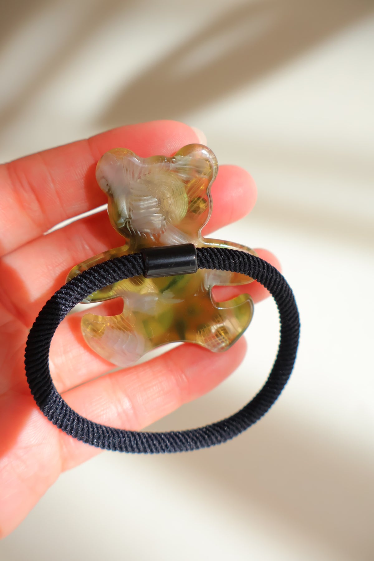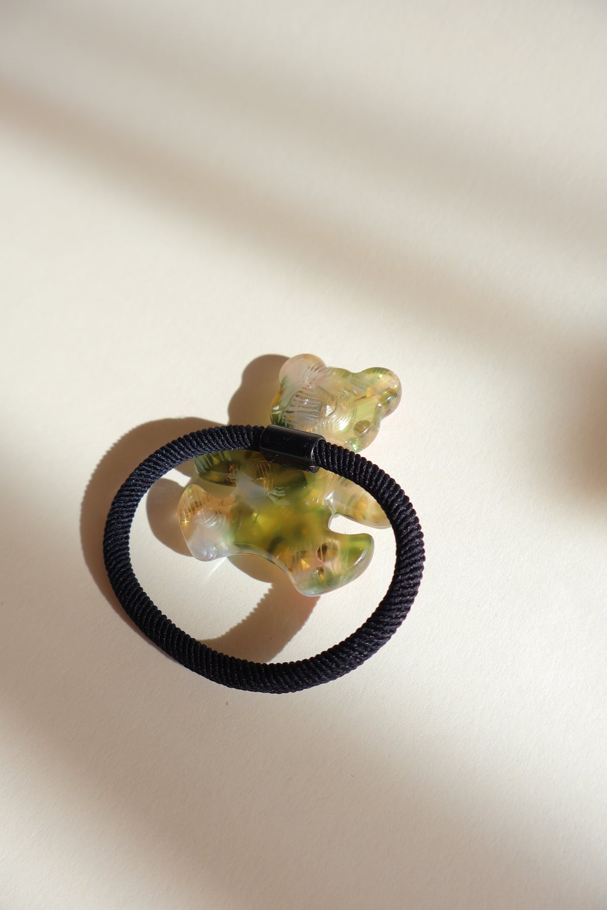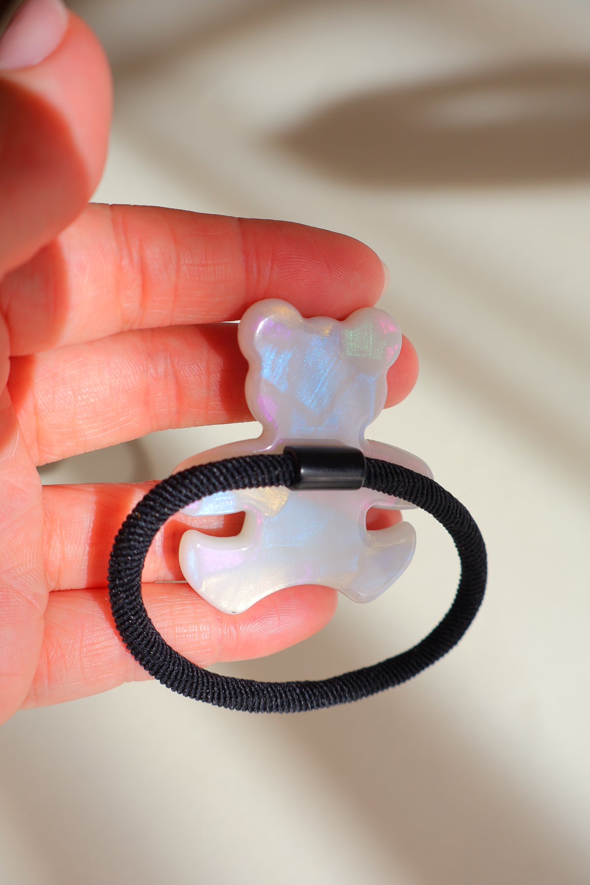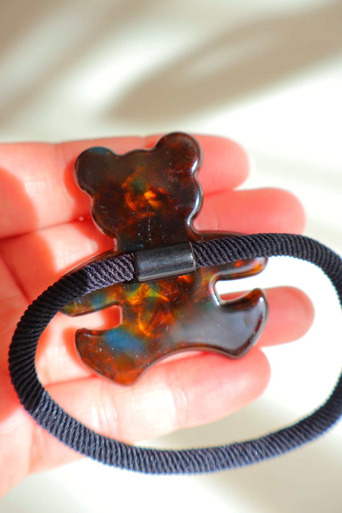 カラフルなクリスタルをたっぷりとあしらった、ジュエリーベアモチーフのヘアゴム。