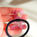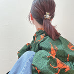 コーディネートのポイントになる、存在感たっぷりのヘアゴムです。
