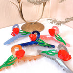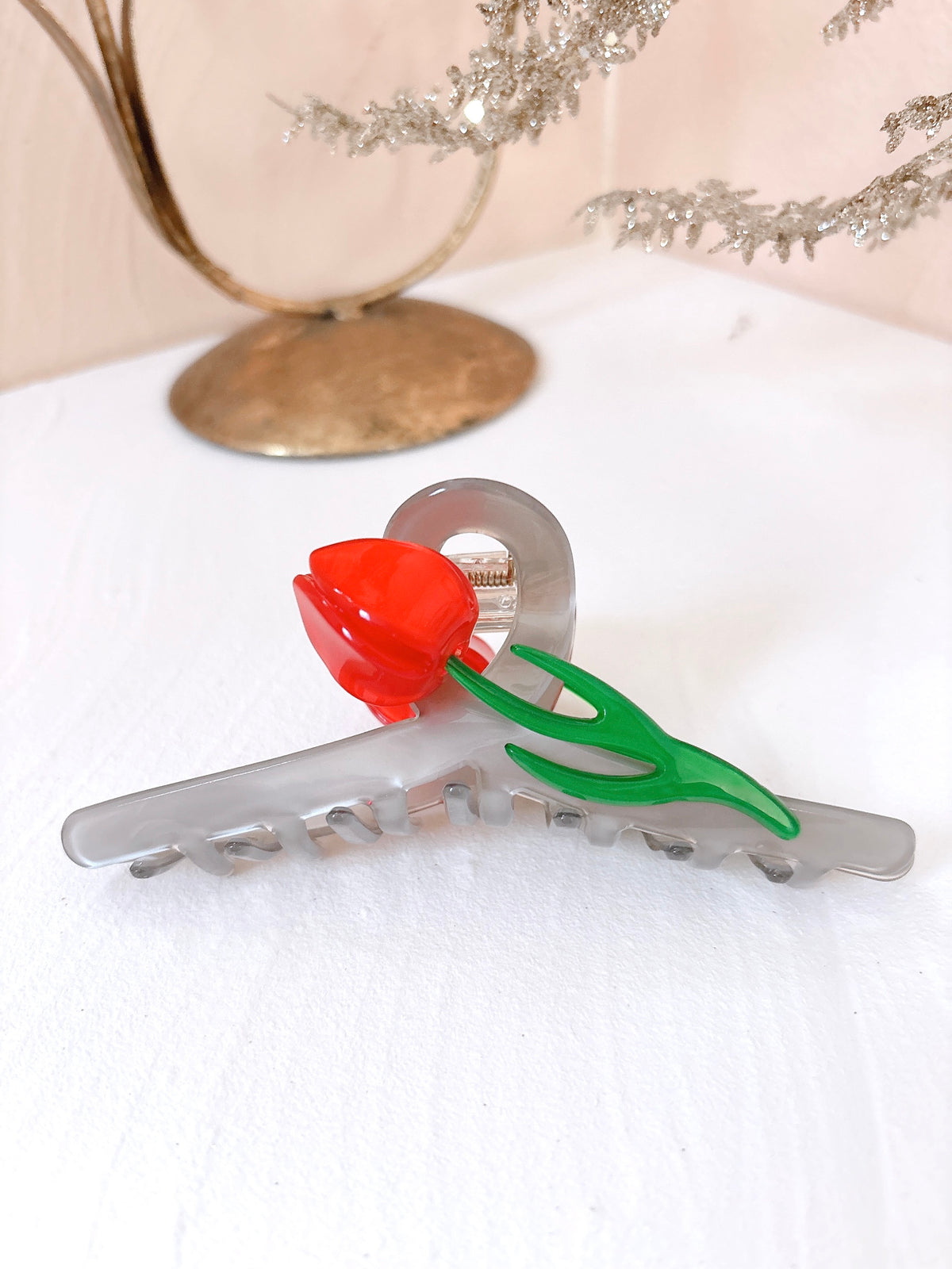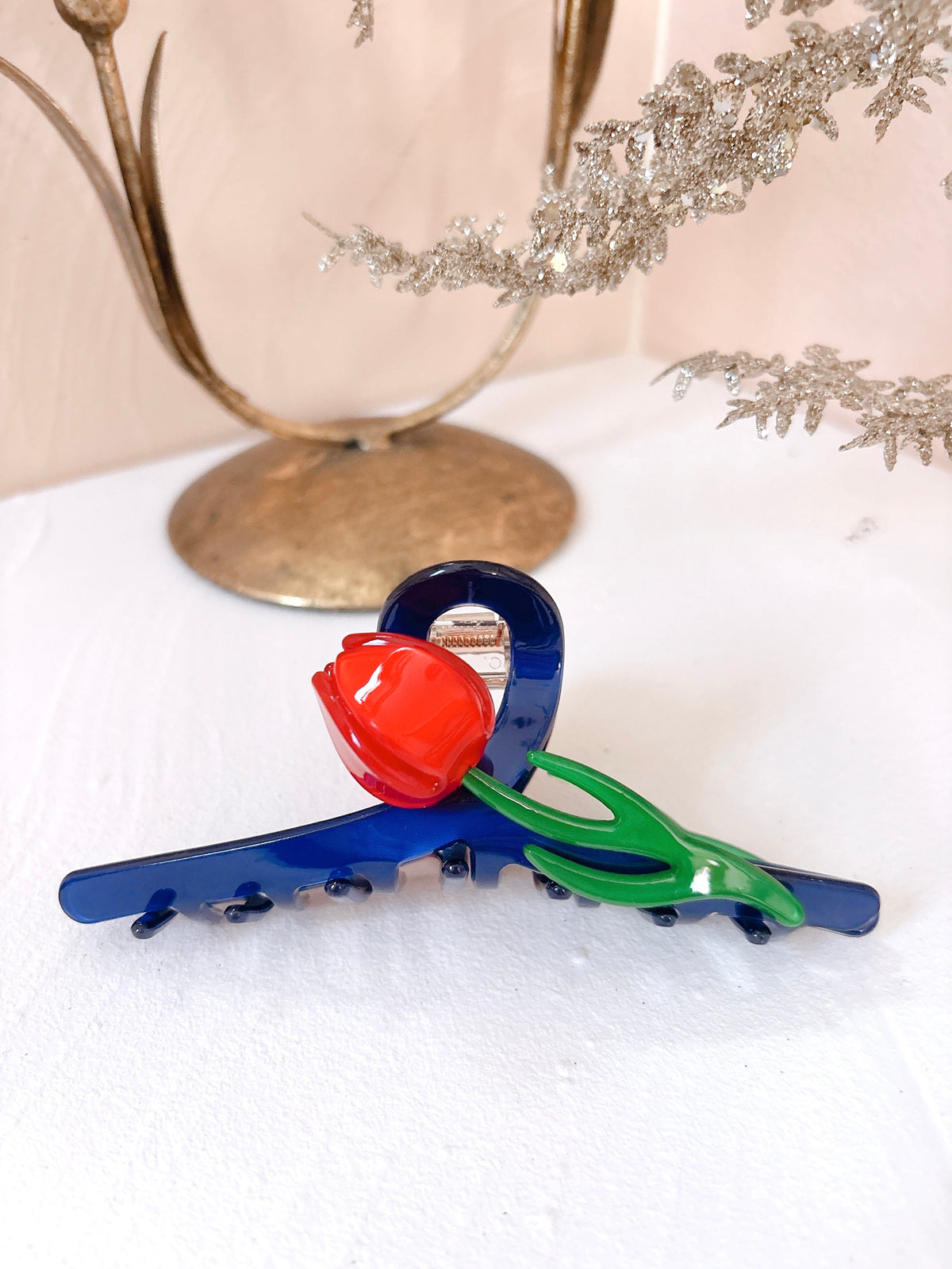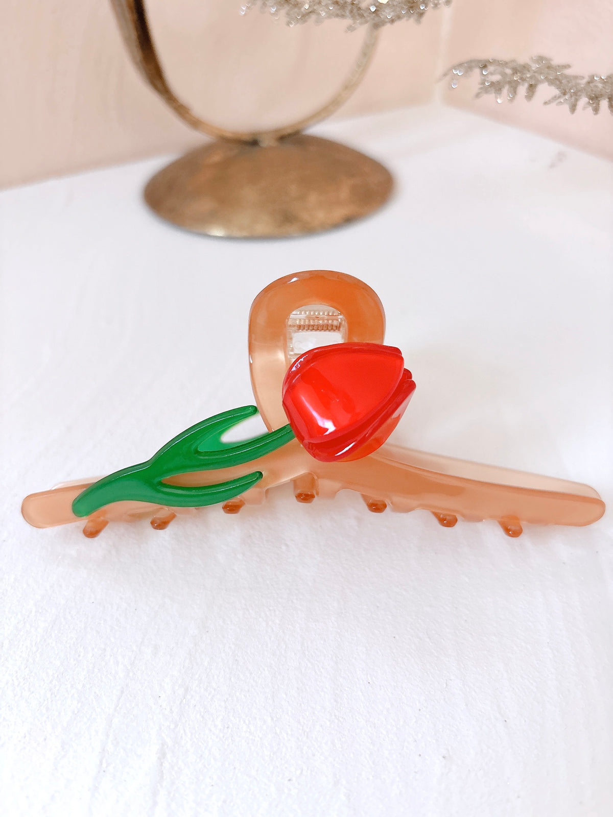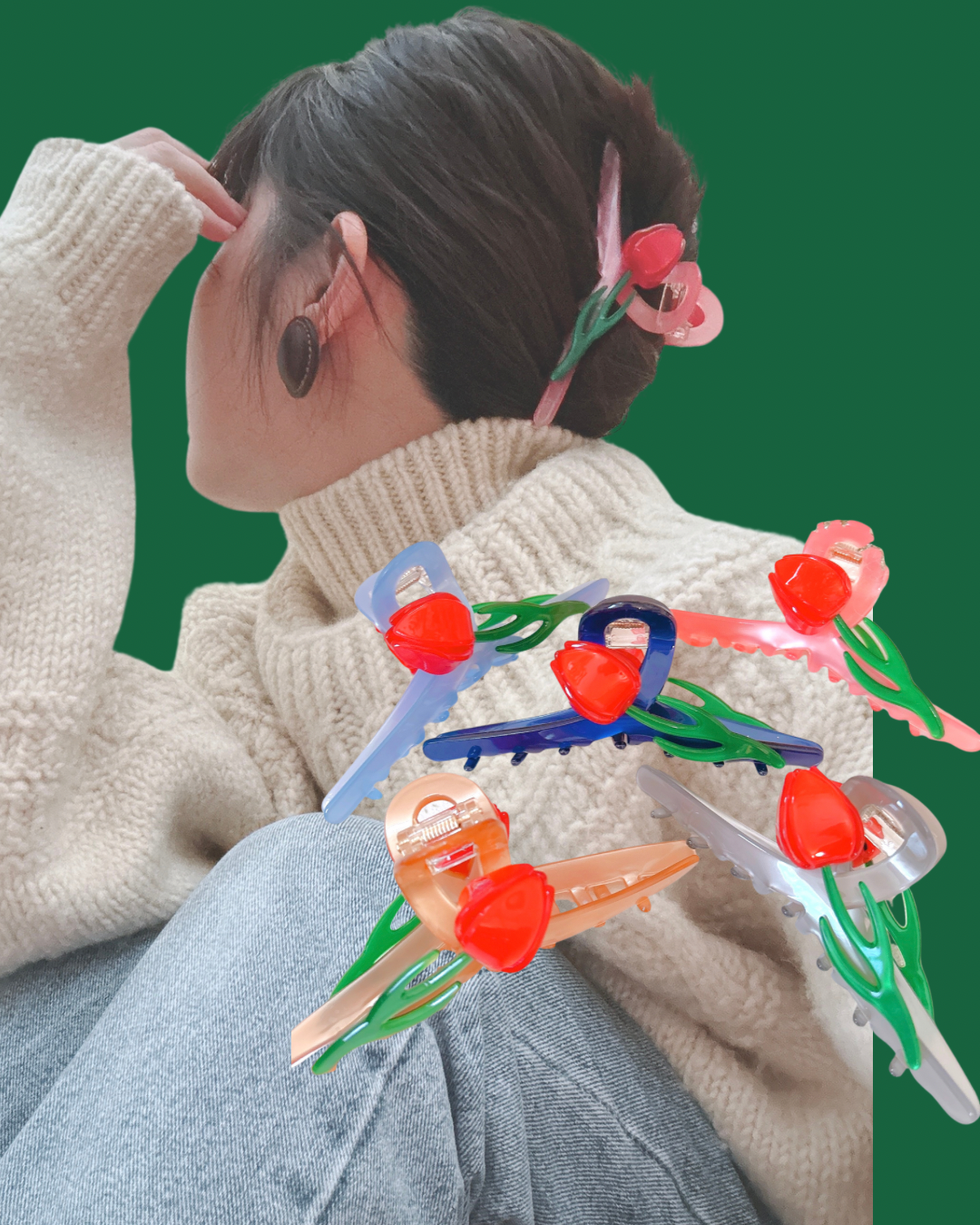 这款发夹采用可爱的郁金香造型,饱满的郁金香形状能为你的发型增添一抹春日气息。鲜艳的色彩使其适合任何发型。